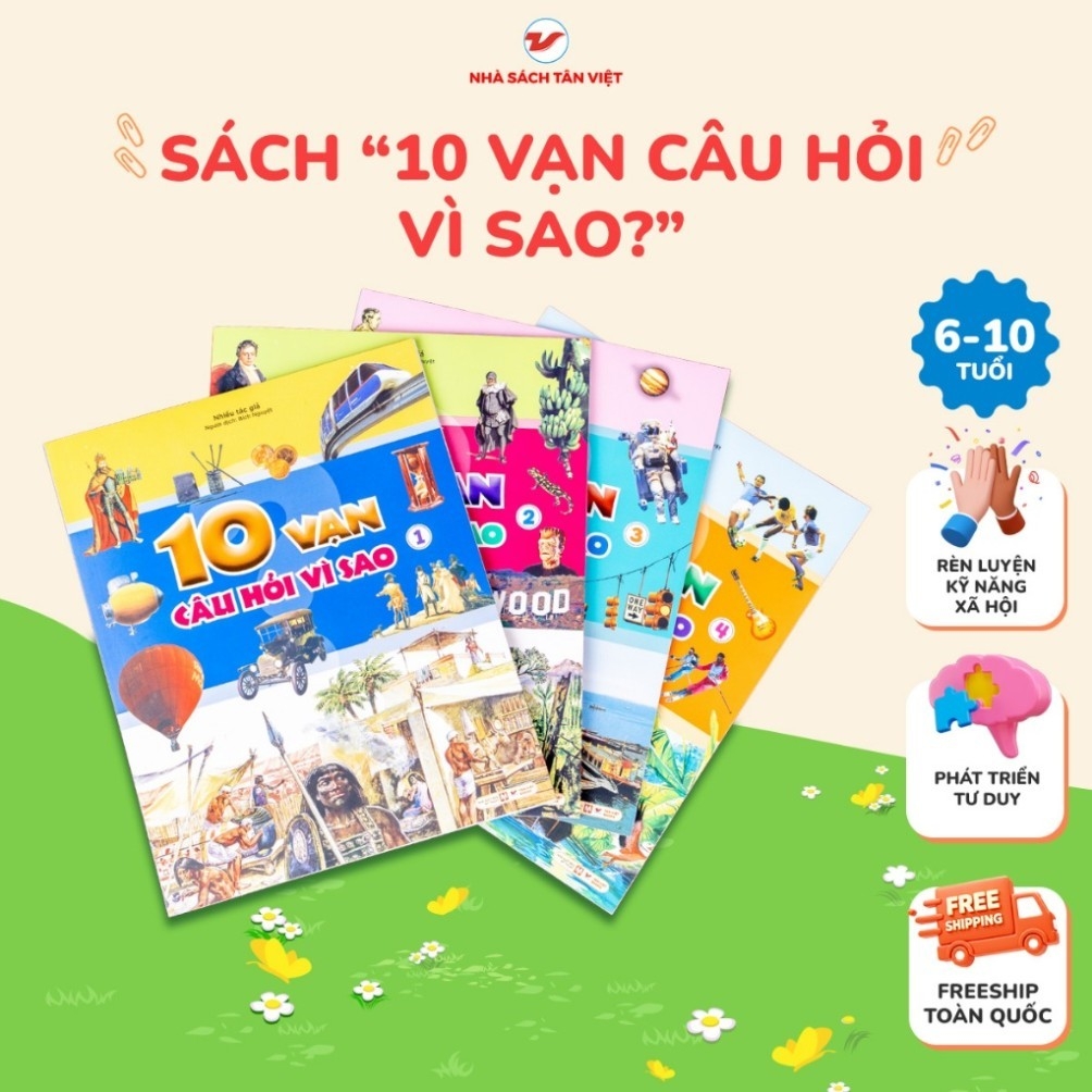 Sách 10 Vạn Câu Hỏi Vì Sao Tân Việt Books – Trọn Bộ 4 Cuốn Giúp Trẻ Khám Phá Thế Giới Khoa HọcBộ sách 10 Vạn Câu Hỏi Vì Sao? là lựa chọn lý tưởng cho các bạn nhỏ yêu thích khám phá và tò mò về thế giới xung quanh. Bộ sách không chỉ cung cấp kiến thức bổ ích mà còn kích thích khả năng tư duy, tìm hiểu và đặt câu hỏi của trẻ từ sớm.🌈 ĐIỂM NỔI BẬT SẢN PHẨMKHÁM PHÁ KHOA HỌC & LỊCH SỬTừng cuốn sách đưa trẻ đến với những kiến thức thú vị về lịch sử, văn minh cổ đại, phát minh khoa học, động – thực vật, vũ trụ, công nghệ, cơ thể người, thể thao và địa lý. Trẻ sẽ được tìm hiểu về nền văn minh Maya, La Mã cổ đại, cách con người tính toán thời xưa, các phát minh vĩ đại hay những bí ẩn của tự nhiên.MINH HỌA SINH ĐỘNG – DỄ HIỂUHình ảnh trực quan, sinh động giúp trẻ dễ hình dung và ghi nhớ thông tin, đồng thời tăng khả năng tập trung và hứng thú với việc học.KÍCH THÍCH TƯ DUY & GIẢI ĐÁP CÂU HỎIMỗi tập sách là một kho tàng câu hỏi và giải đáp hấp dẫn, giúp trẻ tự trả lời các thắc mắc về khoa học, văn hóa, thiên nhiên và cuộc sống hàng ngày. Trẻ sẽ học được cách lý giải những hiện tượng xung quanh một cách logic và khoa học.📚 TRỌN BỘ 4 CUỐN GỒM:Tập 1: Lịch sử và văn minh cổ đại, phương tiện giao thông, kinh tế – xã hội.Tập 2: Nghệ thuật, văn học, điện học, thế giới động – thực vật.Tập 3: Khoa học – công nghệ, vũ trụ, các phát minh quan trọng.Tập 4: Cơ thể người, thuốc, thể thao, địa lý và thám hiểm.Với hình ảnh minh họa sinh động và nội dung kiến thức phong phú, bộ sách 10 Vạn Câu Hỏi Vì Sao? là cuốn bách khoa thư thu nhỏ, trở thành người bạn đồng hành giúp trẻ mở rộng tầm nhìn, khám phá những điều kỳ thú trong cuộc sống và thế giới xung quanh.#tanvietbooks #10vancauhoivisao #sachgiaoduc #sachthieunhi #truyentranhgiaoduc #khoahocchobe #daytre #daycon