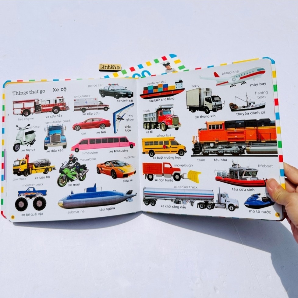 Cuốn sách này chủ yếu được biên soạn với mục đích: Mở rộng vốn từ Anh - Việt thông dụng, kích thích niềm đam mê khám phá thế giới và ngôn ngữ, phát triển tư duy hình ảnh.Hình ảnh sinh động, trực quan: Sách được thiết kế màu sắc hấp dẫn, sử dụng cả ảnh chụp thật và ảnh vẽ minh họa. Điều này cực kỳ quan trọng đối với trẻ nhỏ, giúp các em dễ dàng liên kết từ vựng với hình ảnh thực tế và ghi nhớ lâu hơn.Thiết kế song ngữ: Cung cấp từ vựng bằng cả tiếng Anh và tiếng Việt, tạo điều kiện thuận lợi cho cả phụ huynh và người học.Khổ sách lớn (thường là 23x23 cm): Thuận tiện cho việc lật giở, xem hình ảnh và học cùng con.