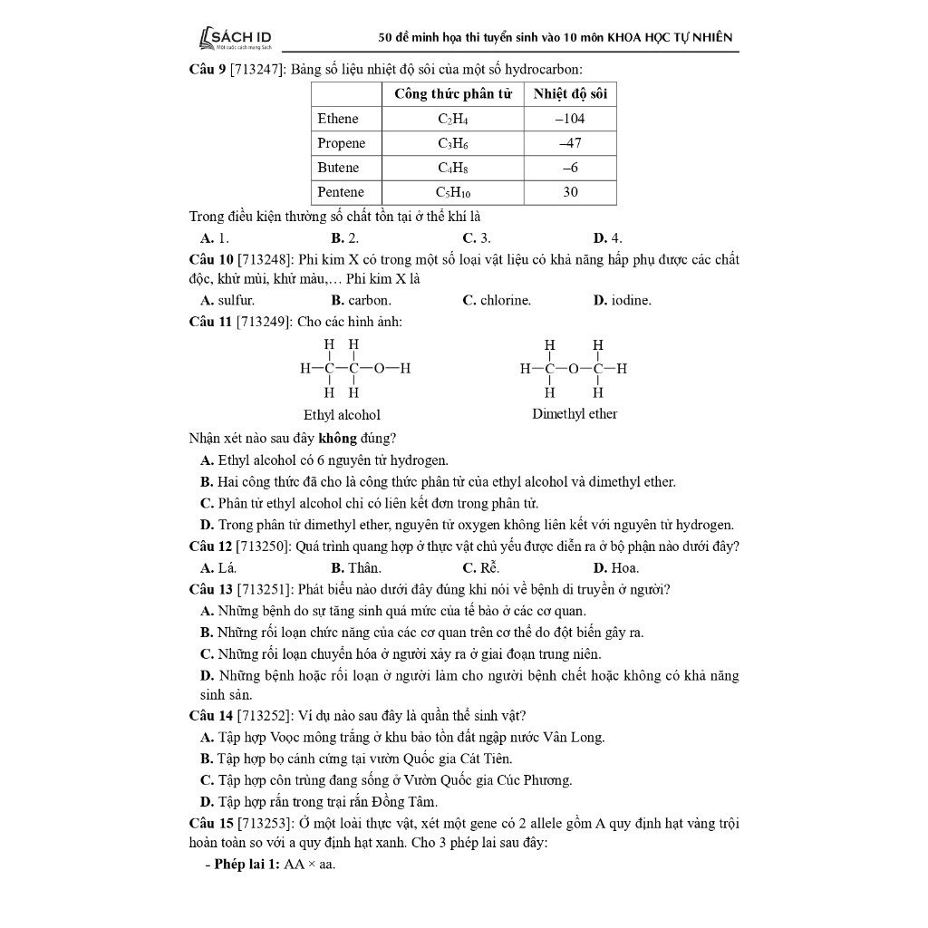 45 Đề minh họa thi vào 10 môn Khoa học tự nhiên - 200k - MB
