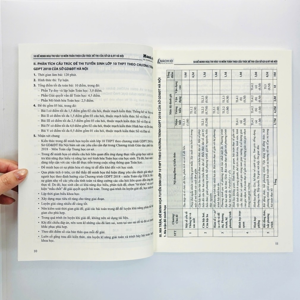 Sách - 50 Đề Minh Hoạ Thi Vào 10 Môn Toán (Theo Cấu Trúc Đề Thi Của Sở GD&ĐT Hà Nội) DÀNH CHO HỌC SINH Ở KHU VỰC HÀ NỘITHÔNG TIN CHI TIẾT:+ Nhà phát hành: Công ty Cổ phần Công nghệ Giáo dục trực tuyến ALADANH+ Nhà xuất bản: NXB Dân Trí+ Tác giả: Nhiều tác giả+ Kích thước: 19 x 27 cm+ Số trang: 200+ Năm xuất bản: 2024Kỳ thi tuyển sinh vào lớp 10 luôn là cột mốc quan trọng đối với học sinh lớp 9. Nhằm giúp các em ôn luyện hiệu quả, cuốn sách "50 ĐỀ MINH HOẠ THI VÀO 10 THPT MÔN TOÁN" được biên soạn theo định hướng mới nhất của Sở GD&ĐT Hà Nội, bám sát chương trình GDPT 2018. Đây là tài liệu không thể thiếu để học sinh rèn luyện tư duy, nắm vững kiến thức trọng tâm và làm quen với các dạng đề thi thực tế.📌Cấu trúc nội dung sách- Ôn luyện trọng tâm kiến thức theo chương trình mới nhất, bao gồm:✔ Số và Đại số✔ Hình học và Đo lường✔ Thống kê và Xác suất- Phát triển năng lực toán học, giúp học sinh:✔ Rèn luyện tư duy và lập luận toán học✔ Giải quyết vấn đề toán học hiệu quả✔ Áp dụng mô hình hoá toán học vào bài thi- Nội dung chính gồm 2 phần:✔ Phần I: Phân tích cấu trúc đề thi tuyển sinh lớp 10 THPT theo chương trình GDPT 2018 của Sở GD&ĐT Hà Nội, định hướng ôn luyện và ma trận đề thi minh hoạ.✔ Phần II: Hệ thống 50 đề minh hoạ với các dạng câu hỏi, bài tập được cập nhật mới nhất năm 2025, bám sát cấu trúc đề thi chính thức của Sở GD&ĐT Hà Nội.📌Điểm nổi bật của sách✔ Bám sát đề thi mới nhất theo định hướng của Sở GD&ĐT Hà Nội✔ Hệ thống bài tập đa dạng, giúp học sinh làm quen với nhiều dạng toán✔ Định hướng ôn luyện rõ ràng, hỗ trợ học sinh tối ưu hoá quá trình học tập✔ Lời giải chi tiết, dễ hiểu, giúp học sinh tự học và phát triển tư duyCuốn sách là tài liệu hữu ích dành cho học sinh lớp 9 khu vực Hà Nội đang ôn thi vào lớp 10, giúp các em tiếp cận đề thi bám sát cấu trúc chính thức. Đồng thời, đây cũng là nguồn tư liệu tham khảo chất lượng cho giáo viên trong việc xây dựng đề thi thử và hỗ trợ học sinh ôn luyện. Với nội dung phong phú, cập nhật mới nhất và phương pháp hướng dẫn chi tiết, cuốn sách này chắc chắn sẽ là trợ thủ đắc lực giúp học sinh tự tin chinh phục kỳ thi tuyển sinh quan trọng! TỦ SÁCH ÔN THI KIẾN THỨC VỮNG VÀNG, VƯỢT NGÀN THỬ THÁCH#50deminhhoathivao10montoan#Toan#KhuVucHaNoi#OnThiVao10#DeMinhHoa#TotNghiepTHCS#Lop9#THCS#SachThamKhao#TuSachOnThi