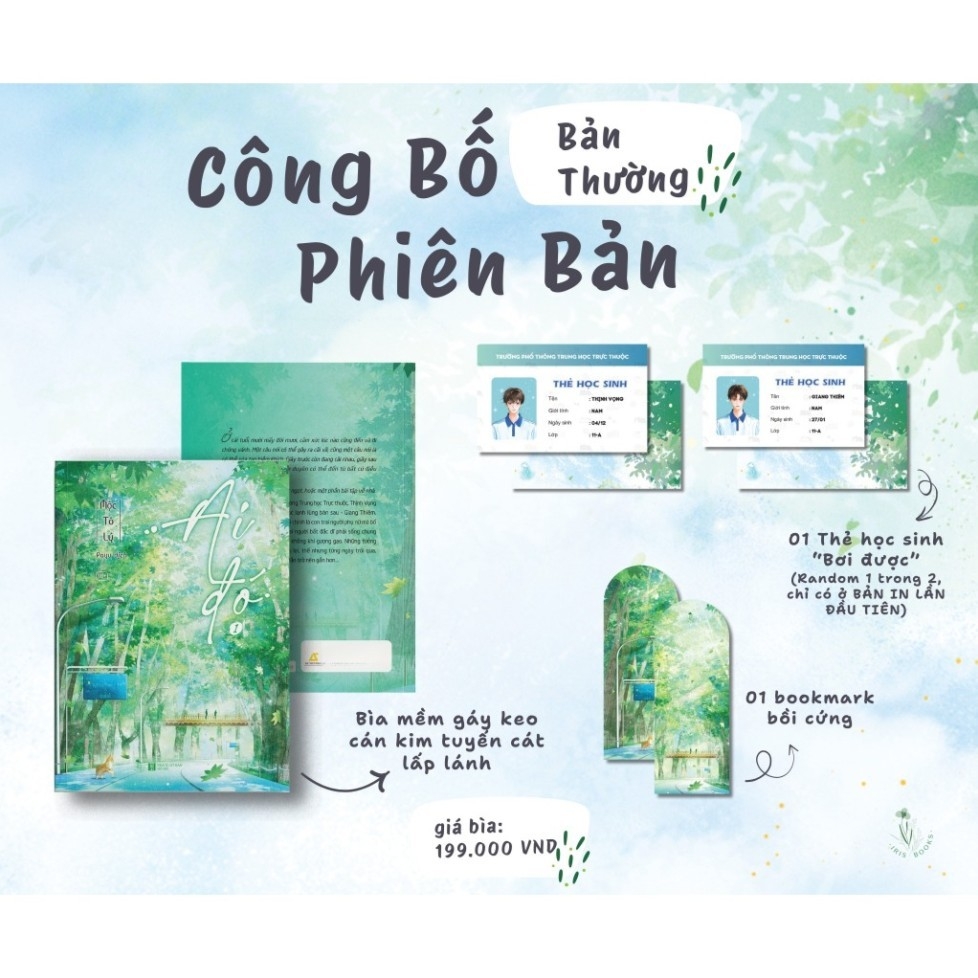 Bản thường:- Bìa keo mềm cán kim tuyến cát, khổ sách 14.5x20.5cm, 432 trang- 01 Bookmark 2 mặt bồi cứng- 01 thẻ học sinh PVC (random 1/2 mẫu Giang Thiêm - Thịnh Vọng) Bản đặc biệt:- Bìa áo tay gấp, cán bóng tên sách- Bìa cứng, khổ sách 14.5x20.5cm, 432 trang- 01 Bookmark 2 mặt bồi cứng- 01 Postcard 2 mặt bồi cứng- 01 Standee 10cm- 01 Túi tote- 01 Quạt nhựa size 14.5x14.5cm- 02 thẻ học sinh PVC Từ trong bụi hoa đằng trước tòa nhà Đốc Hành, một chú mèo hoang chui ra, thoăn thoắt haiba bước đã nhảy lên bệ cửa sổ. Giang Thiêm dừng chân trong chốc lát, ngẩng đầu lên nhìnvề phía con mèo hoang ấy.Vào khoảnh khắc đó, Thịnh Vọng như nhìn thấy hình ảnh của Ngoài Rặng Ngô Đồng mườinăm về trước, cậu bé ngây thơ trong bức ảnh cũ bỗng như xuyên qua dòng thời gian, hiện rarõ mồn một trước mắt cậu.Chỉ có điều chú mèo biết cố tình nhảy ra giữ chân cậu ấy từ lâu đã chẳng còn nữa.Thịnh Vọng dừng khựng một lúc, rồi lại tăng tốc chạy về phía Giang Thiêm.Trường học của ngày hôm ấy vẫn an tĩnh như bấy lâu nay, tiếng chuông báo hết giờ nghỉtrưa còn chưa vang lên, ngay đến cả chim chóc cũng rúc mình trong bóng cây gà gật. Ngườibổ nhào tới từ phía sau là sự tồn tại sống động duy nhất trong không gian tĩnh mịch này...Giang Thiêm cảm thấy cổ mình bị người ta quàng lấy, cả hai cùng loạng choạng mấy bướctheo quán tính. Hắn ngạc nhiên quay đầu lại, nhìn thấy nụ cười rạng rỡ của Thịnh Vọng.Rồi hắn nghe thấy đối phương nói: “Giang Thiêm, chúng ta cùng vào trường ở nội trú đi.”