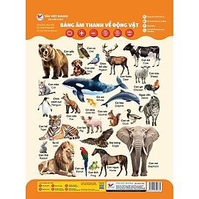 - Âm thanh: rõ ràng, trong trẻo, phát âm tròn vành rõ chữ, giọng đọc chuẩn bản xứ. Đặc biệt trong bảng về Động vật, bé sẽ còn được nghe những âm thanh tiếng kêu thực của 26 loài động vật.
