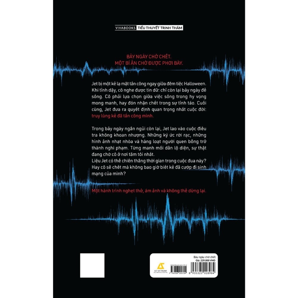 sách: "Bảy ngày chờ chết"Quà tặng kèm: 1 Bookmark bồi bế hìnhnhà phát hành az việt namTác giả: Holly JacksonDịch giả: Phi YếnThể loại: Tiểu thuyết trinh thámThương hiệu: VIVABOOKSKích thước: 15,7x24cmSố trang: 472 trangNhà Xuất Bản: Lao độngGiá bìa: 229.000 đồngMã công ty: 893-532-502-898-4Mã ISBN: 978-632-620-272-4Ngày phát hành dự kiến: 28/07/2025Loại bìa: Bìa mềm, cán kim tuyếnGIỚI THIỆU SÁCH BẢY NGÀY CHỜ CHẾT. MỘT BÍ ẨN CHỜ ĐƯỢC PHƠI BÀY. Jet bị một kẻ lạ mặt tấn công ngay giữa đêm tiệc Halloween. Khi tỉnh dậy, cô nghe được tin dữ: chỉ còn lại bảy ngày để sống. Cô phải lựa chọn giữa việc sống trong hy vọng mong manh, hay đón nhận chết trong sự tỉnh táo. Cuối cùng, Jet đưa ra quyết định quan trọng nhất cuộc đời: truy lùng kẻ đã tấn công mình. Trong bảy ngày ngắn ngủi còn lại, Jet lao vào cuộc điều tra không khoan nhượng. Những ký ức rời rạc, những hình ảnh nhạt nhòa và hàng loạt người quen bỗng trở thành nghi phạm. Từng manh mối dần lộ diện, sự thật đang chờ cô ở nơi tăm tối nhất. Liệu Jet có thể chiến thắng thời gian trong cuộc đua này? Hay cô sẽ chết mà không bao giờ biết kẻ đã cướp đi sinh mạng của mình? Một hành trình nghẹt thở, ám ảnh và không thể dừng lại. Holly Jackson là một tiểu thuyết gia nổi tiếng người Anh. Tác phẩm “Bảy ngày chờ chết” chính thức lên kệ Tác phẩm đã được 33 đơn vị xuất bản trên khắp thế giới khai thác bản quyền từ trước khi ra mắt.#traotrithuc #gatniemtin #nhasachtraotrithuc #sachtrinhtham #kinhdi #vanhoc #vientuong #sachhay