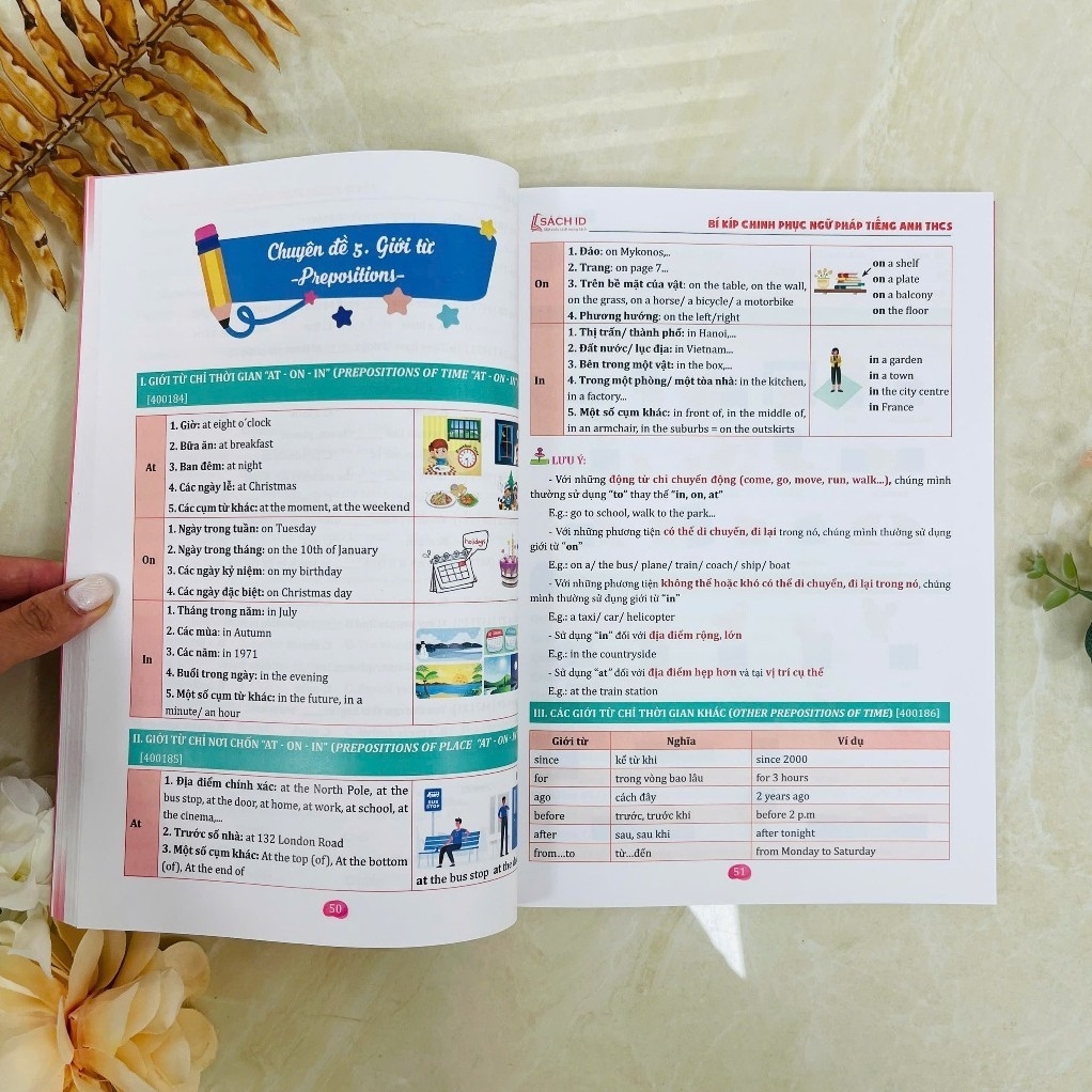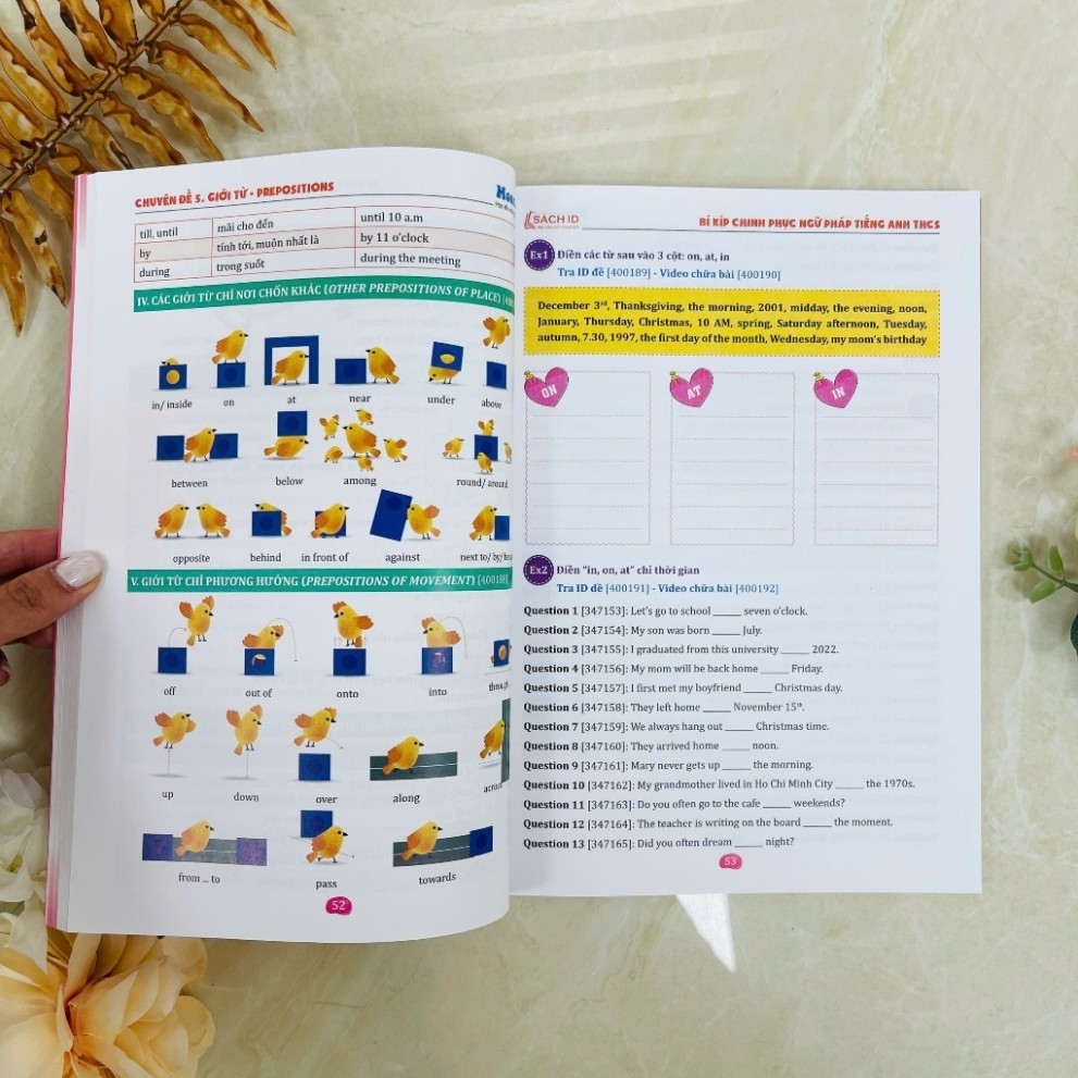 Sách - Bí kíp chinh phục ngữ pháp Tiếng Anh Trung học cơ sở - MOONBOOK Cuốn sách "Bí kíp chinh phục ngữ pháp Tiếng Anh Trung học cơ sở" là tài liệu không thể thiếu dành cho học sinh từ lớp 6 đến lớp 9, giúp hệ thống hóa và củng cố toàn diện kiến thức ngữ pháp tiếng Anh.Cuốn sách gồm 22 chuyên đề với nội dung như sau: I. Từ loại (Parts of Speech) Tập trung vào các thành phần cơ bản của câu như: danh từ, đại từ, mạo từ, lượng từ, giới từ, liên từ, tính từ, và trạng từ. Mỗi loại từ có vai trò riêng trong việc tạo nên cấu trúc và ý nghĩa của câu. II. Cấu trúc câu (Sentence Structure)Giới thiệu các cấu trúc ngữ pháp như: so sánh, hòa hợp chủ ngữ - động từ, câu điều kiện, câu ước, mệnh đề quan hệ, câu bị động, câu tường thuật, và câu hỏi đuôi, giúp người học xây dựng và hiểu các câu phức tạp. III. Cụm từ (Phrases)Tập trung vào cụm động từ, một yếu tố quan trọng trong giao tiếp hàng ngày, giúp hiểu và sử dụng các cụm từ phổ biến. IV. Tổng hợp cấu trúc và kỹ năng (General Structures and Skills)Bao gồm: từ loại, các cấu trúc tổng hợp, viết lại câu với 30 cấu trúc, và chữa lỗi sai. Phần này giúp người học củng cố kiến thức, ứng dụng các cấu trúc đã học và sửa lỗi sai thường gặp trong ngữ pháp.Điểm nổi bật của cuốn sách: Cuốn sách được chia thành từng mục ngữ pháp chi tiết, minh họa sinh động giúp học sinh dễ dàng tra cứu, phân biệt và ghi nhớ nhanh các công thức ngữ pháp. Các quy tắc và công thức ngữ pháp được tóm tắt ngắn gọn, đi kèm với ví dụ minh họa thực tế và lưu ý về các lỗi sai thường gặp, giúp học sinh tránh nhầm lẫn trong quá trình học. Bao quát tất cả kiến thức ngữ pháp từ cơ bản đến nâng cao, đi kèm hệ thống bài tập phong phú, giúp học sinh luyện tập hiệu quả và sẵn sàng cho các kỳ thi quan trọng. Sách còn kèm theo khóa học online và mã ID cho từng bài học, giúp học sinh dễ dàng truy cập vào các bài giảng trực tuyến, xem đáp án và lời giải chi tiết cho từng bài luyện tập trên hệ thống Moon.*Đối tượng sử dụng: Cuốn sách này dành cho tất cả học sinh trung học cơ sở muốn nắm vững kiến thức ngữ pháp tiếng Anh. Đặc biệt phù hợp với học sinh chuẩn bị thi chuyển cấp và những ai muốn cải thiện kỹ năng tiếng Anh. Đây cũng là tài liệu hữu ích cho giáo viên và phụ huynh trong việc hỗ trợ con em học tập.THÔNG TIN SẢN PHẨMCông ty phát hành: Công ty Cổ phần Công nghệ Giáo dục trực tuyến ALADANHNhà xuất bản: NXB Dân TríTác giả: Đinh Thị Mai LanNăm xuất bản: 2023Loại bìa: Bìa mềmSố trang: 247