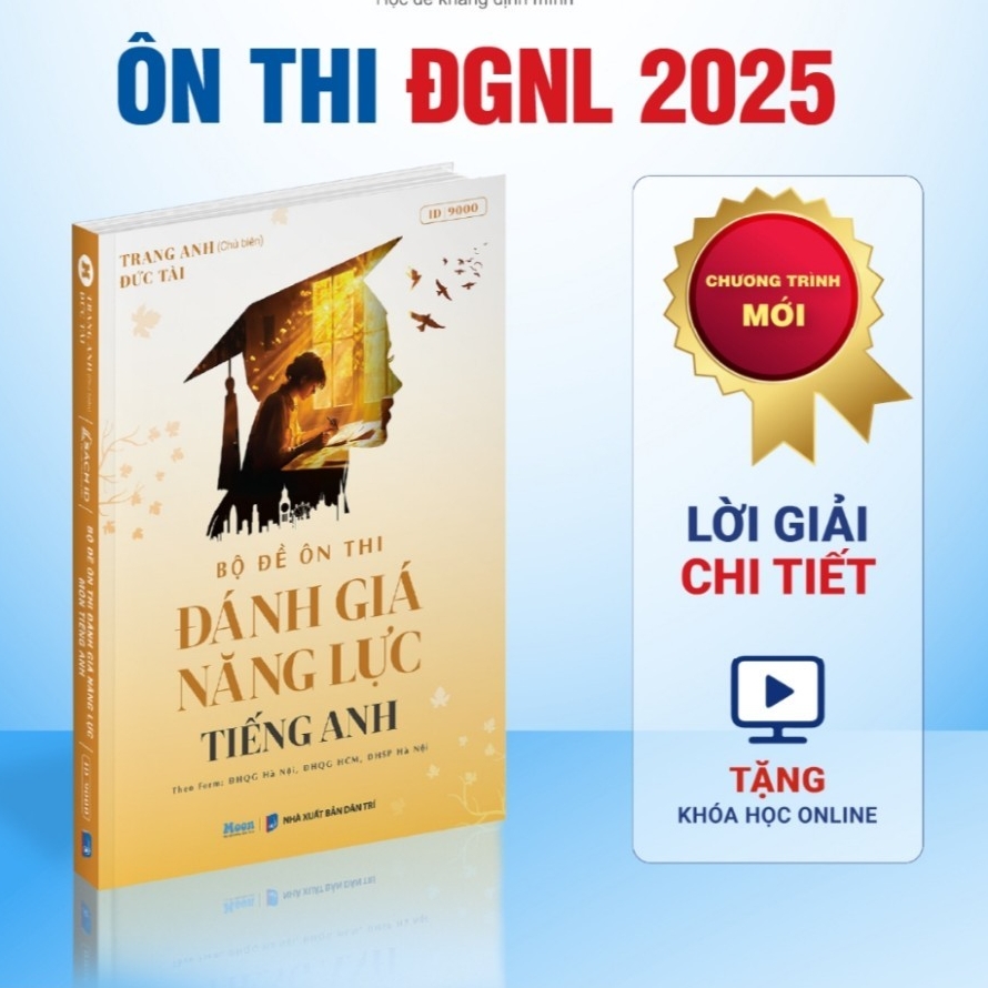 Sách Bộ đề đánh giá năng lực Tiếng anh, ôn thi ĐGNL Hà Nội, HCM, Sư phạm HN 2025 - MoonbookNội Dung : Kì thi Đánh giá Năng lực (ĐGNL) do các trường đại học hàng đầu như Đại học Quốc gia Hà Nội (ĐHQG HN), Đại học Quốc gia TP.HCM (ĐHQG HCM), và Đại học Sư phạm Hà Nội (ĐHSP HN) tổ chức, đã trở thành một trong những kỳ thi quan trọng, giúp các thí sinh đánh giá toàn diện năng lực học tập và tư duy của mình. Thông qua kỳ thi này, học sinh có cơ hội chứng minh năng lực vượt trội trong nhiều lĩnh vực kiến thức và kỹ năng, từ đó định hướng cho việc lựa chọn ngôi trường đại học phù hợp với năng lực và đam mê, cũng như làm căn cứ để xét tuyển vào nhiều trường đại học.Với mong muốn giúp các em học sinh ôn tập môn tiếng Anh có trọng điểm để chuẩn bị tốt cho các kì thi Đánh giá Năng lực này, nhóm tác giả đã dày công biên soạn cuốn sách "BỘ ĐỀ ÔN THI ĐÁNH GIÁ NĂNG LỰC MÔN TIẾNG ANH"Cuốn sách này bám sát cấu trúc và nội dung của các kỳ thi ĐGNL của ba đơn vị tổ chức lớn: Đại học Quốc gia Hà Nội (ĐHQG HN), Đại học Quốc gia TP.HCM (ĐHQG HCM), và Đại học Sư phạm Hà Nội (ĐHSP HN) và được chia thành bốn phần:Phần 1: Cung cấp ma trận đề thi ĐGNL của ĐHQG HCM, ĐHQG HN và ĐHSP HN.Phần 2: Hệ thống các phạm trù kiến thức có trong bài thi ĐGNL của 3 đơn vị trường trênPhần 3: Giới thiệu các dạng bài có trong đề thi ĐGNLPhần 4: Phần đề thi gồm 60 đề phát triển theo form đề thi ĐGNL của Đại học Quốc gia Hà Nội (ĐHQG HN), Đại học Quốc gia TP.HCM (ĐHQG HCM), và Đại học Sư phạm Hà Nội (ĐHSP HN)- 20 Đề phát triển theo form đề thi ĐGNL của đại học quốc gia Hồ Chí Minh - 20 Đề phát triển theo form đề thi ĐGNL của đại học quốc gia Hà Nội - 20 Đề phát triển theo form đề thi ĐGNL của đại học sư phạm Hà NộiCác nội dung trong sách không chỉ giúp học sinh làm quen với định dạng và phong cách ra đề mà còn giúp cải thiện khả năng tư duy logic, kỹ năng phân tích và tổng hợp kiến thức một cách hiệu quả. Ngoài ra, các đề thi mẫu được biên soạn kỹ lưỡng, đảm bảo tính thực tiễn và mức độ khó tương đương với đề thi chính thức. Hơn thế nữa, mỗi bài thi đều có phần đáp án chi tiết và giải thích cụ thể, giúp học sinh hiểu rõ cách làm bài, rèn luyện phương pháp tư duy và tiếp cận vấn đề một cách khoa học.. Đối tượng sử dụng sách : - Học sinh tham gia thi Đánh giá năng lực Hà Nội , Đánh giá năng lực đại học sư phạm Hà Nội , đánh giá năng lực HCM , tốt nghiệp THPT- Thầy cô giáo làm tài liệu tham khảo.#sach #dgnl #tieng #anh #danh #gia #nang #luc #ha #noi #hcm #su #pham #de #on #thi #Co #trang #anh