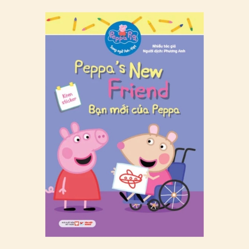 Sách Peppa Pig Song Ngữ Anh Việt – Truyện Tranh Thiếu Nhi Giúp Bé Học Tiếng Anh Hiệu QuảBộ sách Peppa Pig - Song Ngữ Anh-Việt được thiết kế đặc biệt phù hợp với sở thích và khả năng của trẻ nhỏ, giúp các bé vừa vui chơi vừa học tiếng Anh một cách tự nhiên. Các câu chuyện xoay quanh các hoạt động thường ngày, phản ánh đời sống gần gũi với trẻ, giúp bé dễ dàng đồng cảm và hòa mình cùng nhân vật.🌈 ĐIỂM NỔI BẬT SẢN PHẨMHỌC TIẾNG ANH & TIẾNG VIỆT SONG SONGVới câu từ ngắn gọn, từ vựng dễ đánh vần, trẻ sẽ học đọc tiếng Việt dễ dàng. Các từ tiếng Anh đơn giản, dễ nhớ giúp bé tiếp cận ngôn ngữ một cách tự nhiên. Việc trình bày song ngữ còn giúp bé hiểu sự khác biệt trong cách diễn đạt và cấu trúc của từng ngôn ngữ.CÂU CHUYỆN GẦN GŨI – DỄ HIỂUTrẻ sẽ được theo dõi Peppa khám phá lớp học, gặp gỡ người bạn mới – Chuột Mandy, một bạn học vui vẻ, can đảm và đáng yêu, dù phải di chuyển bằng xe lăn. Câu chuyện truyền tải thông điệp về tình bạn, lòng dũng cảm và sự yêu thương.STICKER KHÍCH LỆ – TĂNG HỨNG THÚ ĐỌC SÁCHMỗi cuốn sách đi kèm sticker, là phần thưởng thú vị sau khi bé hoàn thành từng câu chuyện, giúp các bé hào hứng khám phá các cuốn sách khác trong bộ.Bộ sách Peppa Pig - Song Ngữ Anh-Việt là lựa chọn hoàn hảo để bé vừa giải trí, vừa phát triển ngôn ngữ, đồng thời học được những giá trị sống ý nghĩa từ các câu chuyện hàng ngày.#peppapig #songngu #truyentranhchobe #hocngoaingu #sachthieunhi #daytre #truyentranhgiaoduc