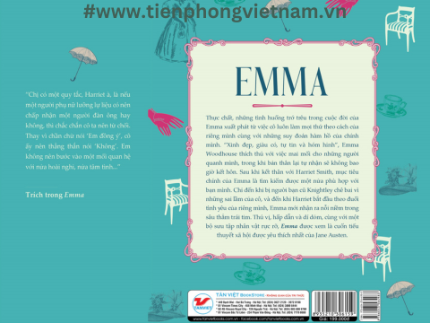 Cuốn sách "EMMA" của Jane Austen là một trong những tác phẩm nổi tiếng nhất trong sự nghiệp văn học của tác giả. Cuốn tiểu thuyết kể về cuộc sống của nhân vật chính, Emma Woodhouse, một tiểu thư xinh đẹp ở vùng Highbury. Emma có nhiệm vụ quản lý gia sản của gia đình và nổi tiếng với khả năng mai mối người khác. Câu chuyện xoay quanh các mối quan hệ, mai mối, và tình yêu trong cuộc sống của Emma.
