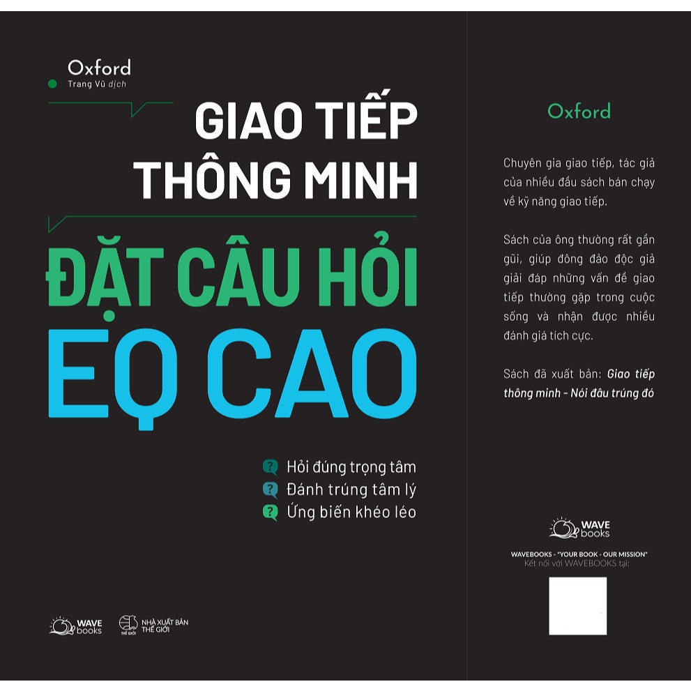 Giao Tiếp Thông Minh - Đặt Câu Hỏi EQ CaoTác giả Oxford Dịch giả Trang Vũ Thể loại Kỹ năngKích thước 14,5 x 20,5 cmNhà xuất bản Thế GiớiThương hiệu WavebooksCông ty phát hành AZ Việt NamMã code 8935325030383 Mã ISBN 9786326046854 Loại bìa Bìa mềm Số trang 264Ngày phát hành 28/08/2025* * *Giới thiệu sách:Trong công việc, cuộc sống hay mối quan hệ, mỗi người đều có nhu cầu, mong muốn và khao khát riêng. Thế nhưng, không phải ai cũng có đủ dũng cảm và khôn khéo để mở lời.Thực tế đã chứng minh, những người thành công và hạnh phúc đều vô cùng mạnh dạn trong việc đưa ra yêu cầu nhằm đảm bảo lợi ích cho mình. Một khi dám chủ động bày tỏ suy nghĩ, bạn không chỉ nhận được đáp ứng hữu hình mà còn có được sự thỏa mãn về tinh thần. ● Trong công việc: Dám thẳng thắn đưa ra yêu cầu dựa trên tiềm lực của mình giúp bạn có lộ trình thăng tiến rõ ràng, tạo ra vị thế vững chắc và có mức đãi ngộ xứng đáng. ● Trong mối quan hệ: Thể hiện điều mình muốn giúp hai bên thấu hiểu, tránh được hiểu lầm không đáng có, từ đó nuôi dưỡng kết nối sâu sắc và bền vững. ● Trong cuộc sống: Một yêu cầu hỗ trợ đúng lúc và thông minh có thể mở ra những cơ hội bất ngờ, giúp bạn nhận được sự giúp đỡ ngay cả đối với người lạ. Từ việc ngần ngại đến thái độ tự tin khi lên tiếng cho chính mình là một hành trình trưởng thành. Và hành trình đó hoàn toàn có thể được rút ngắn với cuốn sách Giao tiếp thông minh - đặt câu hỏi EQ cao. Đây không chỉ là một cuốn sách mà còn là một bộ công cụ thiết thực, giúp bạn:● Học cách đưa ra yêu cầu tinh tế và hợp lý với sếp, đồng nghiệp, khách hàng, người yêu, bạn bè và ngày cả người lạ.● Rèn luyện tâm lý vững vàng để thoải mái và tự tin thể hiện mong muốn của mình. ● Nắm bắt tâm lý đối phương, giao tiếp theo đúng “tần số” của họ, khiến họ không thể từ chối bạn. ● Ứng biến thông minh và khéo léo khi yêu cầu của bạn bị từ chối hoặc không được phản hồi. Sau khi đọc cuốn sách này, bạn sẽ làm chủ nghệ thuật đánh nhanh “đánh nhanh rút gọn”: nói đúng trọng tâm, rút ngắn khoảng cách giữa yêu cầu của bạn và sự chấp thuận của đối phương. Hãy sẵn sàng khám phá xem nói năng khôn khéo giúp bạn đạt được điều mình muốn như thế nào với cuốn sách Giao tiếp thông minh - đặt câu hỏi EQ cao. Sách được phát hành bởi thương hiệu sách Wavebooks với sứ mệnh trở thành người bạn đồng hành tin cậy cho quá trình phát triển kỹ năng và tâm hồn người Việt trẻ.Về tác giả Oxford ● Chuyên gia giao tiếp, tác giả của nhiều đầu sách bán chạy về kỹ năng giao tiếp.● Sách của ông thường rất gần gũi, giúp đông đảo độc giả giải đáp những vấn đề giao tiếp thường gặp trong cuộc sống, nhận được nhiều đánh giá tích cực.● Sách đã xuất bản: Giao tiếp thông minh – Nói đâu trúng đó#giaotiepthongminhdatcauhoieqcao #wavebooks #oxford #kynang