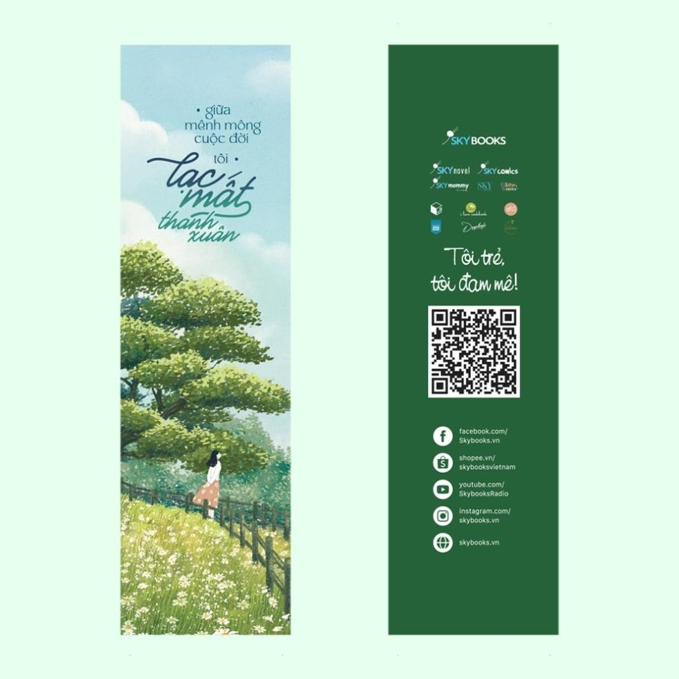 Giữa Mênh Mông Cuộc Đời, Tôi Lạc Mất Thanh Xuân "Quà tặng: BookmarkTác giả: Khánh MâyThể loại: Tản văn Thương hiệu: Glow BooksCông ty phát hành AZ Việt NamKhổ: 13x20 cmSố trang: 208 trangNhà Xuất Bản Dân Trí Giá bìa: 95.000 đồngMã công ty: 8935325021107Mã ISBN: 978-604-40-2787-6Ngày phát hành: 19/06/2024Loại bìa: Bìa mềm“Thanh xuân như một cơn mưa rào, dù cho bạn từng bị cảm lạnh vì tắm mưa, bạn vẫn muốn được đắmmình trong cơn mưa ấy lần nữa.”Khánh Mây, hay còn được biết đến qua cái tên Mây Podcast, sẽ đưa bạn đắm chìm vào cơn mưa rào đầynhững khoắc khoải nhớ thương ấy qua tác phẩm đầu tay “Giữa mênh mông cuộc đời, tôi lạc mất thanhxuân”. Cuốn sách là bức tranh chân thực về tuổi trẻ và hành trình trưởng thành của chính tác giả, từ đó, ta nhưđược sống lại một phần thanh xuân của mình qua từng trang sách. Những ký ức thời thơ ấu, những rung động đầu đời, những bài học về gia đình, về tình bạn, về cuộc sốngtrên hành trình tập lớn, năm tháng thanh xuân ấy hiện lên đầy biến động nhưng cũng để lại những trảinghiệm, những kỉ niệm vô cùng quý giá. Những lần vấp ngã, những lúc cảm thấy lạc lõng và yếu đuối, và cả những khoảnh khắc ngây ngô vụngdại ấy, tất cả đều là những mảnh ghép quan trọng tạo nên con người chúng ta hôm nay.Nhìn lại quá khứ, trân trọng hiện tại và tự tin bước vào tương lai, “Giữa mênh mông cuộc đời, tôi lạc mấtthanh xuân” như lời nhắn gửi đến mỗi người chúng ta rằng sống trọn vẹn tuổi xuân của mình, hãy trântrọng bản thân, trân trọng những gì mình đã trải qua và những gì mình đã trở thành. Để rồi có thể tự tin khẳng định rằng:"Tuổi xuân sẽ cảm thấy tiếc nuối nhường nào nếu để mất một cá thể đặc biệt như tôi cơ chứ?"