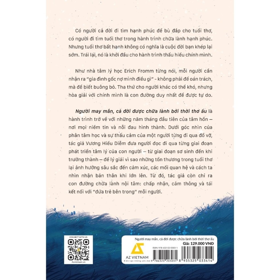 Có người cả đời đi tìm hạnh phúc để bù đắp cho tuổi thơ, có người đi tìm tuổi thơ trong hành trình chữa lành hạnh phúc. Nhưng tuổi thơ bất hạnh không có nghĩa là cuộc đời bạn khép lại sớm. Trái lại, nó là khởi đầu cho hành trình thấu hiểu chính mình. Như nhà tâm lý học Erich Fromm từng nói, mỗi người cần nhận ra “gia đình gốc nợ mình điều gì” – không phải để oán trách, mà để biết buông bỏ. Tha thứ cho người khác có thể khó, nhưng hòa giải với chính mình là con đường duy nhất để được tự do. Người may mắn, cả đời được chữa lành bởi thời thơ ấu là hành trình trở về với những năm tháng đầu tiên của tâm hồn nơi mọi niềm tin và nỗi đau hình thành. Dưới góc nhìn của phân tâm học và sự thấu cảm của một người từng đi qua đổ vỡ, tác giả Vương Hiểu Diễm đưa người đọc đi qua từng giai đoạn phát triển tâm lý của con người – từ giai đoạn sơ sinh đến khi trưởng thành – để lý giải vì sao những tổn thương trong tuổi thơ lại ảnh hưởng sâu sắc đến cảm xúc, các mối quan hệ và cách ta nhìn nhận bản thân khi lớn lên. Từ đó, tác giả còn chỉ ra con đường chữa lành nội tâm: chấp nhận, cảm thông và tái kết nối với “đứa trẻ bên trong” mỗi người.
