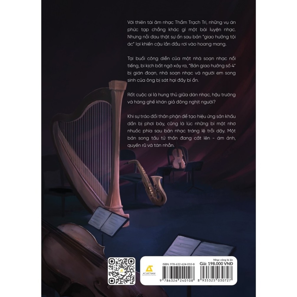 Tác giả: Miêu ĐặcDịch giả: Nguyễn Thảo NguyênKích thước: 14,5x20,5 cmSố trang: 462 trangNhà Xuất Bản: Văn họcVới thiên tài âm nhạc Thẩm Trạch Trì, những vụ án phức tạp chẳng khác gì một bài luyện nhạc. Nhưng nỗi đau thật sự ẩn sau “bản giao hưởng tội ác lại khiến cậu lần đầu rơi vào hoang mang.Tại buổi công diễn của một nhà soạn nhạc nổi tiếng, bi kịch bất ngờ xảy ra, “Bản giao hưởng số 4” bị gián đoạn, nhà soạn nhạc và người em song sinh của ông bị sát hại đầy bí ẩn.Rốt cuộc ai là hung thủ giữa dàn nhạc, hậu trường và hàng ghế khán giả đông nghịt người?Khi sự tráo đổi thân phận để tạo hiệu ứng dần bị phơi bày, cũng là lúc những bí mật nhơ nhuốc phía sau bản nhạc tráng lệ trỗi dậy. Một bản song tấu tử thần đang cất lên – ám ảnh, quyến rũ và tàn nhẫn.