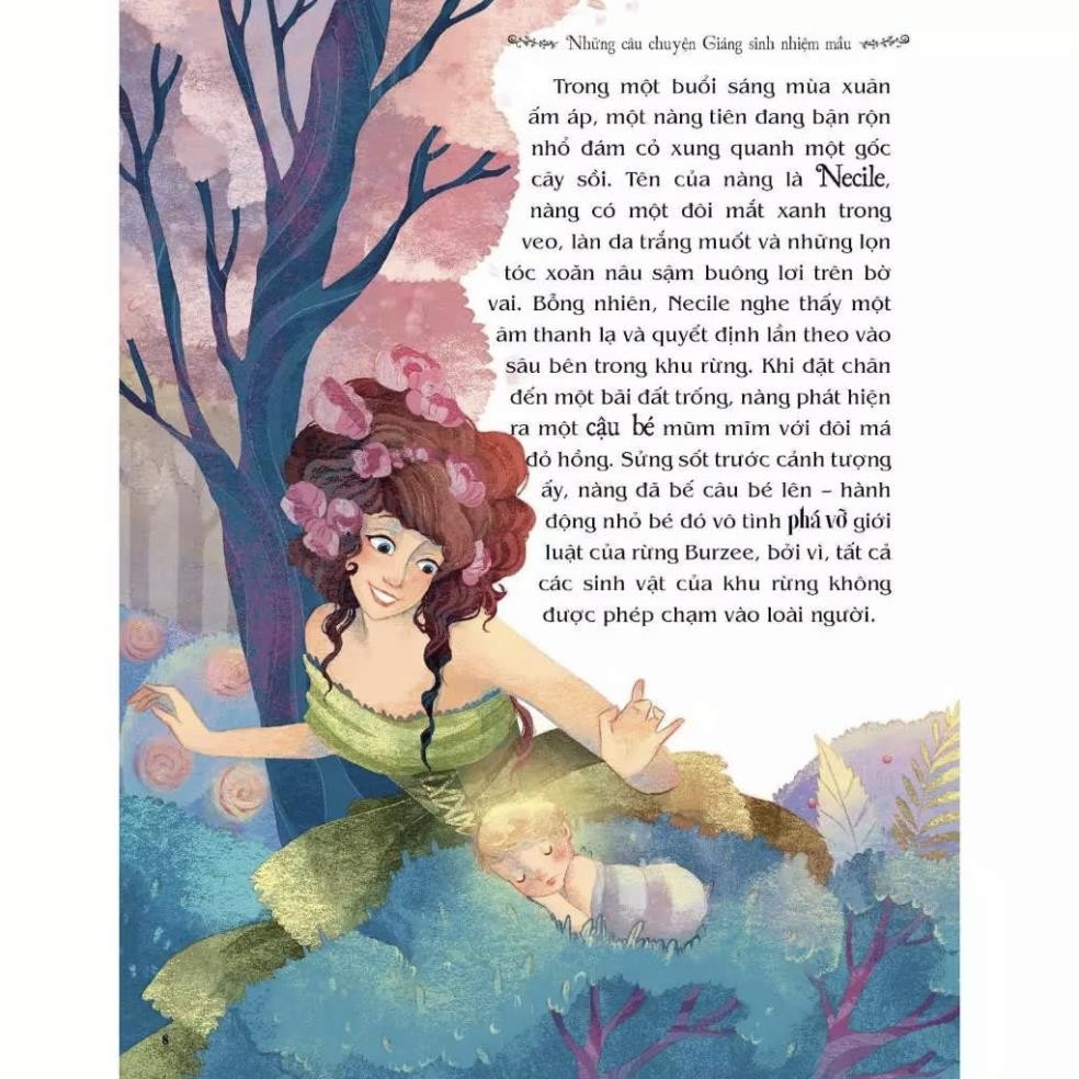 Lễ Giáng sinh luôn là thời khắc mở ra trước mắt trẻ em và cả người lớn một thếgiới diệu kì với ông già Noel cưỡi tuần lộc đi khắp thế gian để trao quà cho các em nhỏ,những cây thông rực rỡ lấp lánh, những vòng hoa đầy màu sắc, những cây kẹo sọc trắngđỏ và miền tuyết trắng mênh mang. Giáng sinh cũng là lúc những câu chuyện cổ tích,những truyền thuyết được kể để ca ngợi tình người ấm áp, sự sẻ chia và niềm tin vào điềuthiện.Những câu chuyện Giáng sinh nhiệm mầu giới thiệu tới các em nhỏ những câuchuyện cổ tích thần tiên cùng những câu chuyện kinh điển, được minh họa bằng nhữngtranh vẽ tuyệt đẹp, giúp các em hiểu rõ hơn về những phép nhiệm mầu của ngày lễ Giángsinh.Các câu chuyện được tổng hợp trong cuốn sách đa dạng từ cổ tích: Cuộc đời vànhững chuyện phiêu lưu của Santa Claus, Sự tích vòng hoa Giáng sinh, Sự tích chimRobin, cho đến những câu chuyện kinh điển như: Bài ca mừng Giáng sinh của CharlesDicken, Chú yêu tinh ở cửa hàng tạp hóa của Andersen, những câu chuyện ngụ ngôn vềcuộc đời như Giấc mơ cuối cùng của cây sồi già, sẽ khiến độc giả được chìm đắm trongkhông khí rộn ràng của mùa lễ hội cuối năm này.