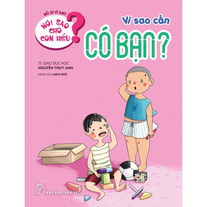 Sách-Nói sao cho con hiểu-Vì sao cần có bạnTác giả: Nguyễn Thụy AnhNhà xuất bản: NXB TrẻHọa sĩ minh họa: Minh ĐứcKhổ sách: 14x18.5cmSố trang: 44Giá bán: 24,000 VNĐIn lần thứ 1 năm 2018Giới thiệu tóm tắt tác phẩm:NÓI SAO CHO CON HIỂU Chính là lời tâm sự thì thầm, lời dặn dò ân cần và lời khuyên bảo cặn kẽ của người cha nói với con gái yêu quý bé bỏng của mình về những vấn đề cần thiết cho con trong cuộc sống. Có những chuyện mà không phải lúc nào những người làm cha mẹ chúng ta cũng có thể dễ dàng nói với con một cách giản dị để con hiểu được ngay như: Ba ơi, tình yêu là gì hả ba? Hoặc, Tổ Quốc nó có hình dáng như thế nào ba nhỉ? Với cách viết của một bậc phụ huynh thấu hiểu căn kẽ tâm lý của con trẻ, những vấn đề tưởng chừng khó nói sao cho ổn thỏa đó đã trở nên dễ hiểu, lung linh và dễ thương đến lạ lùng. Bộ sách gồm 24 tựa chia ra làm 3 nhóm chủ đề.A/ Giúp bé chăm sóc bản thânTrong mỗi tập sách, những lời căn dặn, giải thích ân cần, dễ hiểu của bố mẹ sẽ giúp con biết yêu quý cơ thể mình, biết tự chăm sóc bản thân để sống khỏe mạnh.