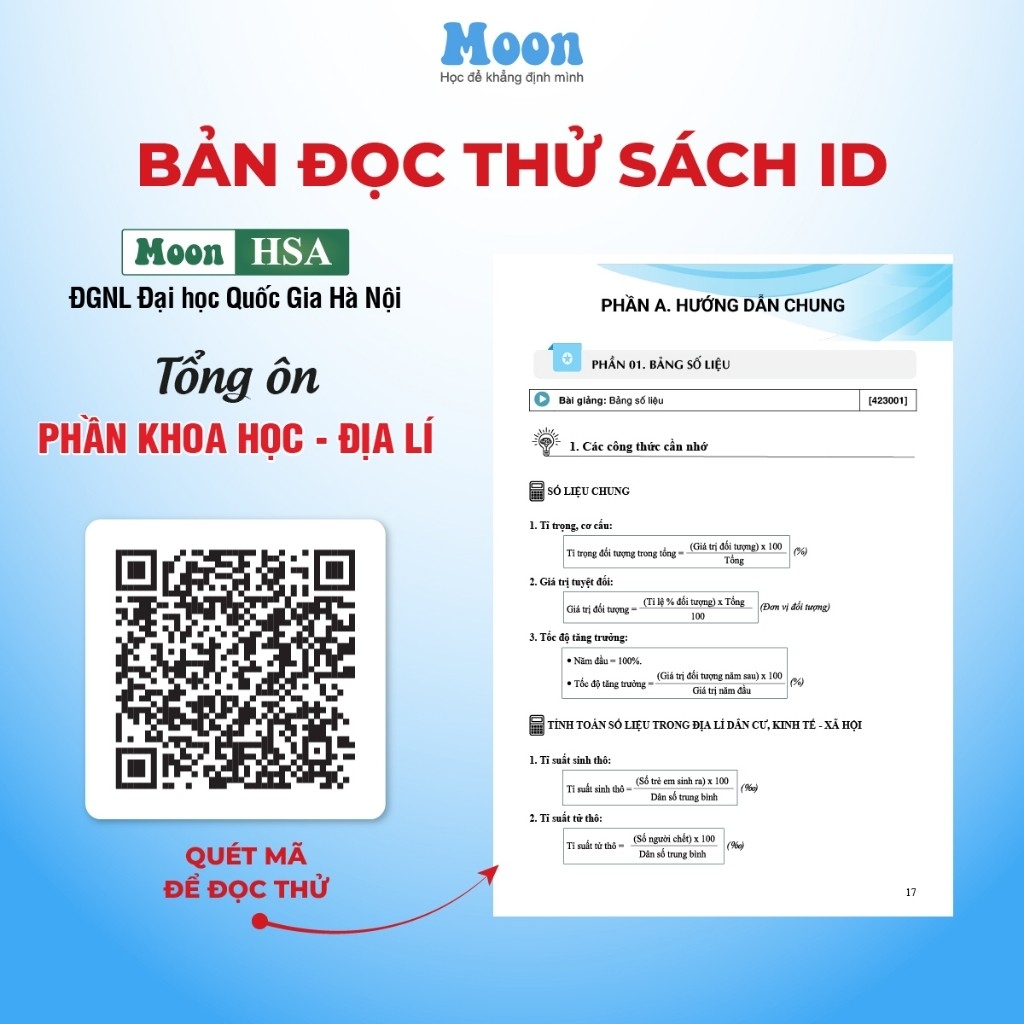 [ HSA 2026 ] Sách ôn thi đánh giá năng lực Hà Nội Tổng ôn phần Khoa Học - môn Địa Lý 1. Nội Dung : - Hệ thống kiến thức đầy đủ theo chương trình mới - Phân dạng chi tiết bài tập và các dang câu hỏi bám sát hướng ra đề kì thi HSA - Video bài giảng lý thuyết đầy đủ cho mỗi chuyên đề - Đề luyện tập củng cố cuối mỗi chuyên đề chuẩn cấu trúc đề kì thi HSA. Bộ Giáo dục và Đào tạo ban hành quyết định về việc phê duyệt phương án tổ chức kỳ thi và xét công nhận tốt nghiệp Trung học phổ thông từ năm 2025 theo chương trình mới.Theo đó, thí sinh thi bắt buộc 2 môn, gồm: Ngữ văn, Toán và 2 môn tự chọn trong số các môn còn lại được học ở lớp 12, gồm: Ngoại ngữ, Lịch sử, Vật lí, Hóa học, Sinh học, Địa lí, Giáo dục kinh tế và pháp luật, Tin học, công nghệ.Trong đó, môn Ngữ văn thi theo hình thức tự luận, các môn còn lại, trong đó có môn Địa lí thi theo hình thức trắc nghiệm.Tuy nhiên, định dạng bài thi của môn Địa lí cũng có nhiều thay đổi. Bên cạnh những câu hỏi trắc nghiệm nhiều lựa chọn như trước, môn Địa lí có thêm dạng câu hỏi Đúng/ Sai và Trả lời ngắn. Điều này đặt ra yêu cầu thay đổi cách thức học tập và ôn luyện của môn học này.Thêm vào đó, Địa lí là môn học với khối lượng kiến thức lớn, có sự giao thoa của cả các môn khoa học tự nhiên (với những yêu cầu về tính toán, xử lý số liệu) và các môn khoa học xã hội (với những yêu cầu về ngôn ngữ, hiểu biết xã hội). Thêm vào đó, để giải quyết được đề thi Địa lí còn đòi hỏi học sinh cập nhật những thông tin về tình hình kinh tế - xã hội mới nhất chứ không bó hẹp trong sách giáo khoa. Đề thi tham khảo 2025 của Bộ GD - ĐT cho thấy xu hướng ra đề với sự phân hóa mạnh mẽ, học sinh nếu không hiểu bản chất mà chỉ học trên bề mặt, học theo “mẹo” thì khó có thể hoàn thành tốt. Bởi vậy, để đạt được điểm cao ở bài thi Địa lí chưa bao giờ là dễ dàng.Với mong muốn đồng hành cùng các em học sinh trong chặng đường khó khăn nhưng vô cùng thú vị ấy, các tác giả trân trọng giới thiệu tới các bạn cuốn “HSA ĐGNL ĐHQG HÀ NỘI - TỔNG ÔN PHẦN KHOA HỌC - MÔN ĐỊA LÍ 2. Thông tin chi tiết : Sách ôn thi đánh giá năng lực Hà Nội HSA - Tổng ôn phần Khoa học - môn Địa lý. - Tác giả: Cô Phương Dung, cô Quỳnh Hương - Kích thước: 19x27- Năm xuất bản: 2024- Loại bìa: Bìa mềm.- Nhà xuất bản Dân Trí.- Số Trang: 350- Nhà phát hành: Công ty cổ phần Công nghệ giáo dục trực tuyến Aladanh ( Moon)- Xuất xứ: Việt Nam3. Đối tượng sử dụng:- Học sinh 12 muốn ôn luyện tất cả các kiến thức có trong đề thi THPT Quốc gia, đánh giá năng lực , tham gia kì thi đánh giá năng lực Đại học quốc gia Hà Nội- Tài liệu tham khảo cho các thầy cô giáo.#sach #tong #on #toan #hoc #12 #tham #khao #nang #cao #on #thi #thpt #danh#gia #nang #luc #moonbook #sach #id #lop #12 #chuong #trinh #Moi #tong #on #cap #toc #HSA #DGNL #HÀNỘI