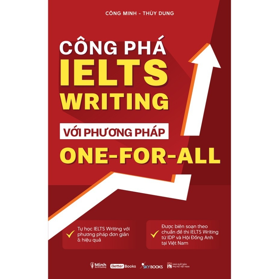 Công Phá IELTS Writing Với Phương Pháp One-For-AllTác giả Công Minh - Thùy DungThể loại Sách kỹ năngKích thước 15,7x24cmNhà xuất bản Phụ NữThương hiệu iBetter Books - SkybooksGiá bìa 129.000 VNĐ Quà tặng kèm Bookmark Mã code 8935325029639 Mã ISBN 978-632-610-936-8 Loại bìa Bìa mềm Số trang 264 trangNgày phát hành 2/8/2025* * *Giới thiệu sách:CÔNG PHÁ IELTS WRITING VỚI PHƯƠNG PHÁP ONE - FOR- ALL- Cuốn sách được biên soạn theo chuẩn đề thi IELTS Writing từ IDP và Hội Đồng Anh tại Việt Nam.IELTS là kỳ thi đánh giá năng lực tiếng Anh uy tín toàn cầu, đóng vai trò như chiếc chìa khóa giúp hàng triệu người vươn xa hơn trên hành trình học tập và phát triển sự nghiệp trong nước lẫn quốc tế. Trong bốn kỹ năng Nghe - Nói - Đọc - Viết (Listening - Speaking - Reading - Writing), Writing luôn là nỗi ám ảnh với phần lớn các thí sinh. Không chỉ đòi hỏi vốn từ vựng và ngữ pháp vững chắc, kỹ năng này còn yêu cầu tư duy logic, khả năng triển khai ý mạch lạc và bám sát các tiêu chí chấm điểm khắt khe.Hiểu rõ những khó khăn đó, cuốn sách "Công phá IELTS Writing với phương pháp One-For-All" ra đời như một giải pháp đột phá với 3 tiêu chí cốt lõi: Đơn giản - Dễ học - Dễ đạt điểm cao. Cuốn sách sẽ giúp bạn xóa tan nỗi sợ bài thi viết chỉ với MỘT phương pháp duy nhất, áp dụng cho mọi dạng đề từ Task 1 đến Task 2, từ đó giải quyết hơn 90% trở ngại thường gặp khi tự học IELTS Writing!"Công phá IELTS Writing với phương pháp One-For-All" là kết tinh từ kinh nghiệm giảng dạy hàng ngàn học viên của hai tác giả - thầy Công Minh và cô Thùy Dung, cuốn sách mang đến lộ trình học rõ ràng, hiệu quả - biên soạn theo chuẩn đề thi IELTS Writing từ IDP và Hội Đồng Anh tại Việt Nam với 4 phần:+ Phần 1: Mở đầu: Giới thiệu phương pháp học One-For-All+ Phần 2: Tổng quan phương pháp viết “Đơn giản - Điểm cao” cho Task 1 với các dạng đề (Line Chart, Pie Chart, Bar Chart, Table, Process và Map) + Phần 3: Tổng quan phương pháp viết “Đơn giản - Điểm cao” cho Task 2 với các dạng đề (Give Opinion, Reasons & Solutions, Discuss Advantages and Disadvantages, Problem & Solutions, 2-part question,...)+ Phần 4: Bài mẫu nâng cao Task 2 với các chủ đề phổ biếnKhông chỉ cung cấp bài mẫu minh họa sau mỗi phần kiến thức, cuốn sách "Công phá IELTS Writing với phương pháp One-For-All" còn trang bị hệ thống từ vựng mở rộng và bài tập thực hành giúp bạn hiểu sâu từng dạng bài, rèn tư duy học thuật và khả năng lập luận - những yếu tố then chốt để đạt điểm cao trong phần Writing. Đây sẽ là cuốn cẩm nang giúp bạn rèn luyện kỹ năng viết một cách bài bản, hệ thống, thay vì học tủ hoặc viết theo cảm tính.Hy vọng "Công phá IELTS Writing với phương pháp One-For-All" sẽ là người bạn đồng hành đáng tin cậy, hỗ trợ bạn sớm chinh phục band điểm mơ ước!