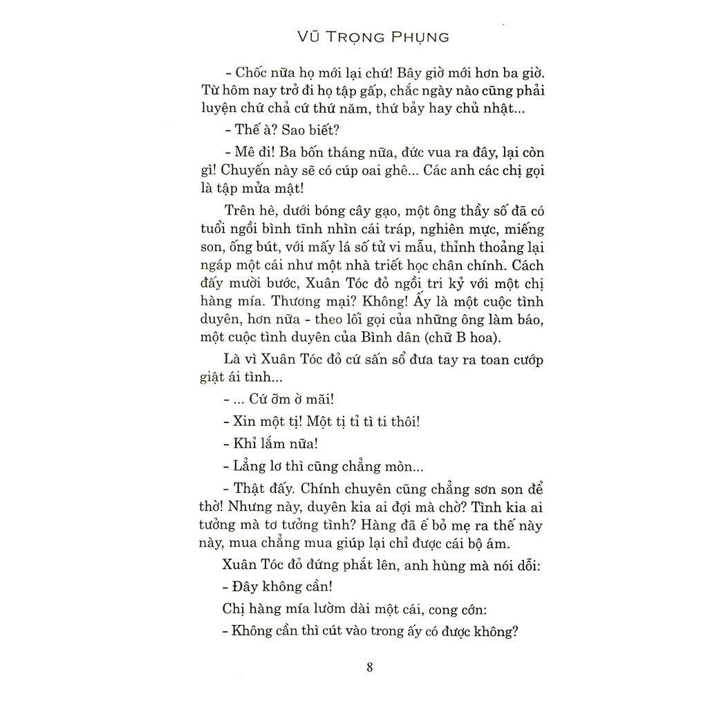 Số Đỏ (Huy Hoàng)Số Đỏ là một tiểu thuyết văn học của nhà văn Vũ Trọng Phụng, đăng ở Hà Nội báo từ số 40 ngày 7 tháng 10/1936 và được in thành sách lần đầu vào năm 1938.Truyện dài 20 chương và được bắt đầu khi bà Phó Đoan đến chơi ở sân quần vợt nơi Xuân tóc đỏ làm việc. Vô tình Xuân tóc đỏ vì xem trộm 1 cô đầm thay đồ nên bị cảnh sát bắt giam và được bà Phó Đoan bảo lãnh. Sau đó, bà Phó Đoan giới thiệu Xuân đến làm việc ở tiệm may Âu Hóa, từ đó Xuân bắt đầu tham gia vào việc cải cách xã hội. Nhờ thuộc lòng những bài quảng cáo thuốc lậu, hắn được vợ chồng Văn Minh gọi là "sinh viên trường thuốc", "đốc tờ Xuân". Hắn gia nhập xã hội thượng lưu, quen với những người giàu và có thế lực, quyến rũ được cô Tuyết và phát hiện cô Hoàng Hôn ngoại tình. Xuân còn được bà Phó đoan nhờ dạy dỗ cậu Phước, được nhà sư Tăng Phú mời làm cố vấn cho báo Gõ Mõ. Vì vô tình, hắn gây ra cái chết cho cụ cố tổ nên được mọi người mang ơn. Văn Minh vì nghĩ ơn của Xuân nên dẫn Xuân đi xóa bỏ lí lịch trước kia rồi đăng kí đi tranh giải quần vợt nhân dịp vua Xiêm đến Bắc Kì. Bằng thủ đoạn xảo trá, hắn làm 2 vận động viên quán quân bị bắt ngay trước hôm thi đấu nên Xuân được dịp thi tài với quán quân Xiêm. Vì để giữ tỉnh giao hảo, hắn được lệnh phải thua. Kết thúc trận đấu, khi bị đám đông phản đối, Xuân hùng hồn diễn thuyết cho đám đông dân chúng hiểu hành động "hi sinh vì tổ quốc của mình", được mời vào hội Khai trí tiến đức, được nhận huân chương Bắc Đẩu bội tinh và cuối cùng trở thành con rể cụ cố Hồng.Bằng ngòi bút trào phúng độc đáo, Số đỏ lên án gay gắt cái xã hội tư sản thành thị Việt Nam đang chạy theo lối sống văn minh rởm hết sức lố lăng đồi bại đương thời. Tác giả đã đả kích cay độc các phong trào "Âu hóa", "thể thao", "giải phóng nữ quyền", "tiến bộ", "cải cách xã hội" mà thực chất chỉ là ăn chơi trụy lạc, làm tiền, chà đạp trắng trợn lên mọi nền nếp đạo đức truyền thống… Ngôn ngữ nghệ thuật của Vũ Trọng Phụng thấm đẫm cá tính sáng tạo. Một thứ ngôn ngữ vừa gai góc, sắc nhọn, mỉa mai, chua chát. Cũng là thứ ngôn ngữ hướng đến sự phô bày, lên án, tố cáo những mặt trái của xã hội nhưng dữ dội hơn so với các cây bút hiện thực khác.----------------------------------------------------------------------------------------------------------------------------------------Công ty phát hành: Huy HoàngNăm Xuất Bản: 2023Kích Thước: 13.5 x 20.5 cmTác Giả: Vũ Trọng PhụngSố Trang: 215Bìa: MềmNhà Xuất bản: Văn Học