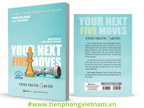 Cuốn sách "Tính Trước 5 Bước" của tác giả Greg Dinkin và Patrick Bet-David nhấn mạnh tầm quan trọng của việc tính toán và xem trước những bước quan trọng trong kinh doanh và cuộc sống. Tác giả sử dụng thuật ngữ cờ vua để tượng trưng cho việc dự đoán và lập kế hoạch trước.