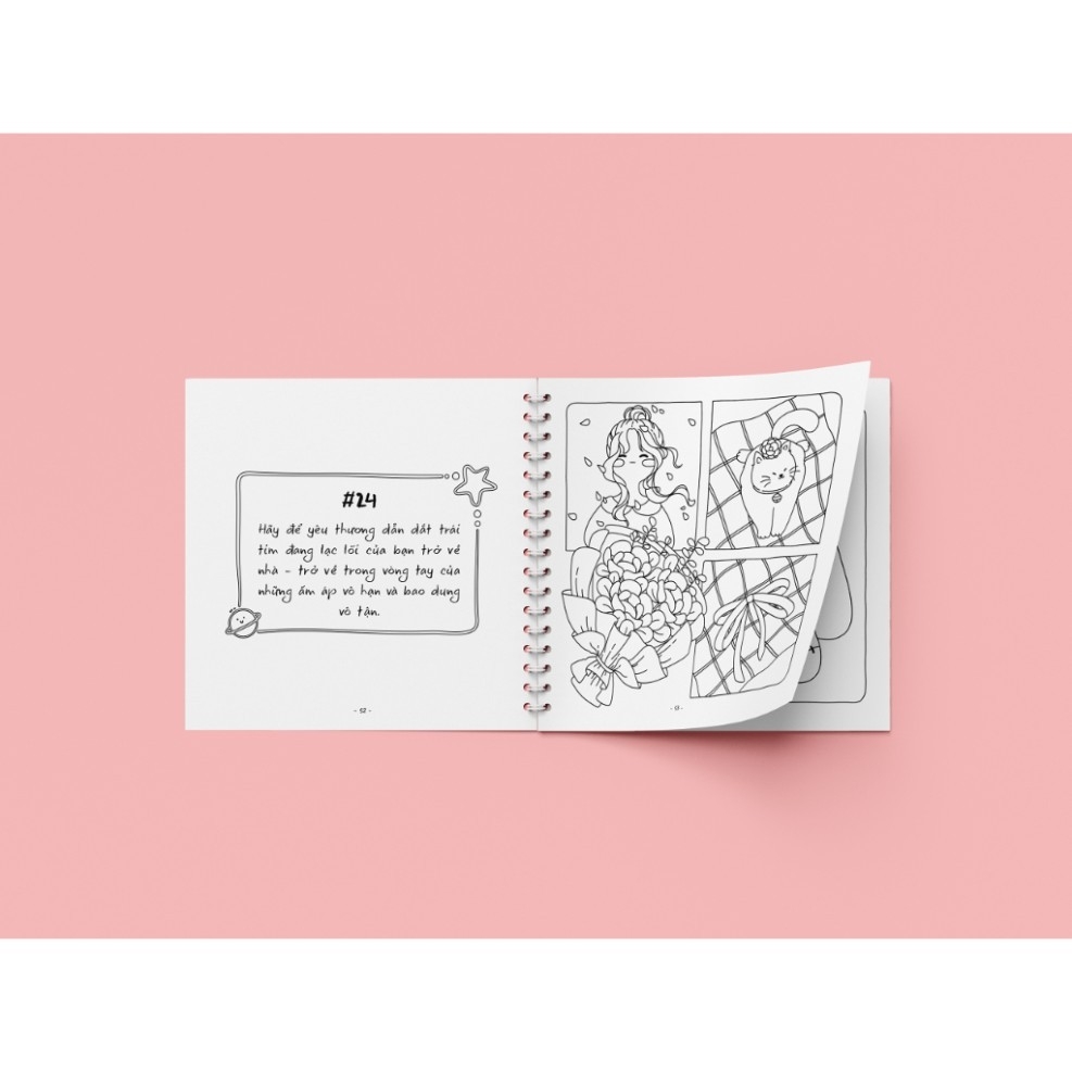 Khi lật giở và tự tay tô màu những trang tranh dễ thương trong cuốn sổ tô màu này, mong rằng bạn đọc sẽ có một khoảng lặng be bé giữa những bộn bề thường nhật, để thêm trân trọng từng khoảnh khắc giản dị nhưng đong đầy hạnh phúc: một tách trà ấm, ánh nắng sớm, hay đơn giản là niềm biết ơn vì mình vẫn sống đủ đầy.