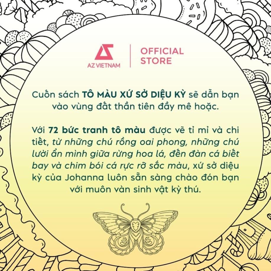 Cuốn sách TÔ MÀU XỨ SỞ DIỆU KỲ sẽ dẫn bạn vào vùng đất thần tiên đầy mê hoặc. Với 72 bức tranh tô màu được vẽ tỉ mỉ và chi tiết, từ những chú rồng oai phong, những chú lười ẩn mình giữa rừng hoa lá, đến đàn cá biết bay và chim bói cá rực rỡ sắc màu, xứ sở diệu kỳ của Johanna luôn sẵn sàng chào đón bạn với muôn vàn sinh vật kỳ thú.