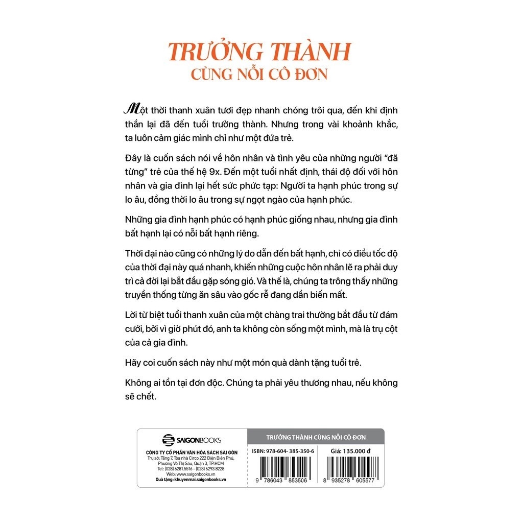 Trưởng thành cùng nỗi cô đơn - SaiGonBooks 135k